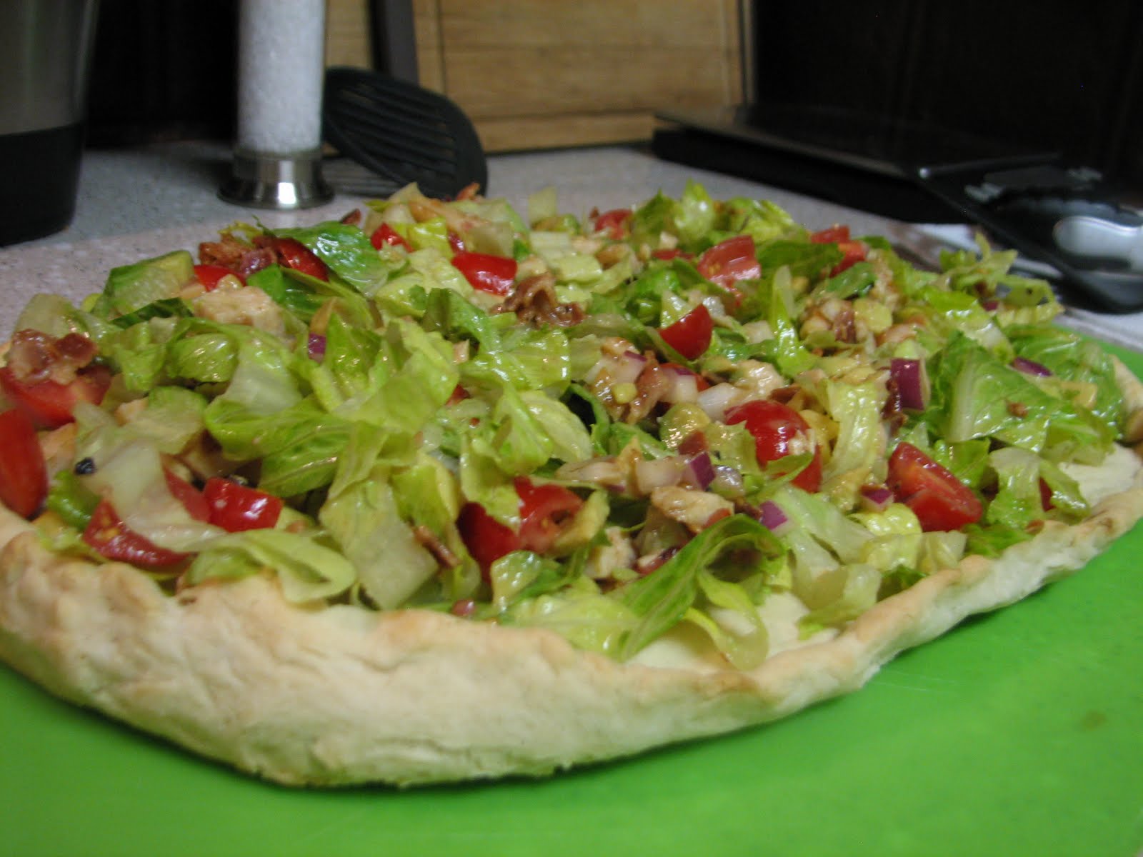 This alone looks delicious. But to make it even better, I pulled the pizza dough out of the oven and layered the salad on top.